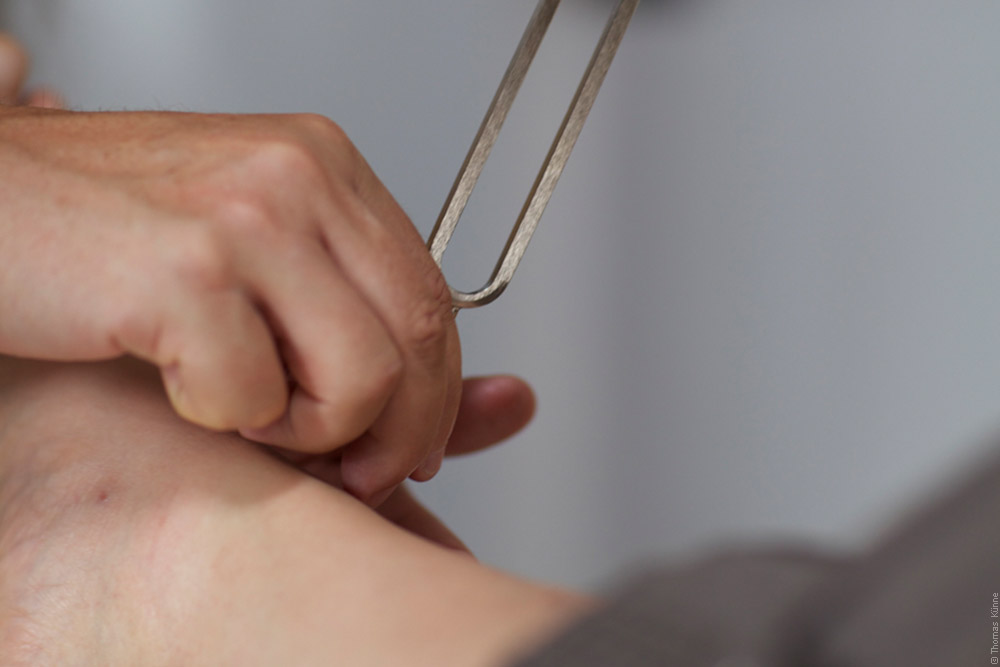 Individuell angepasste Behandlung mit ausgewählten Stimmgabeln und weiteren unterstützenden Techniken.